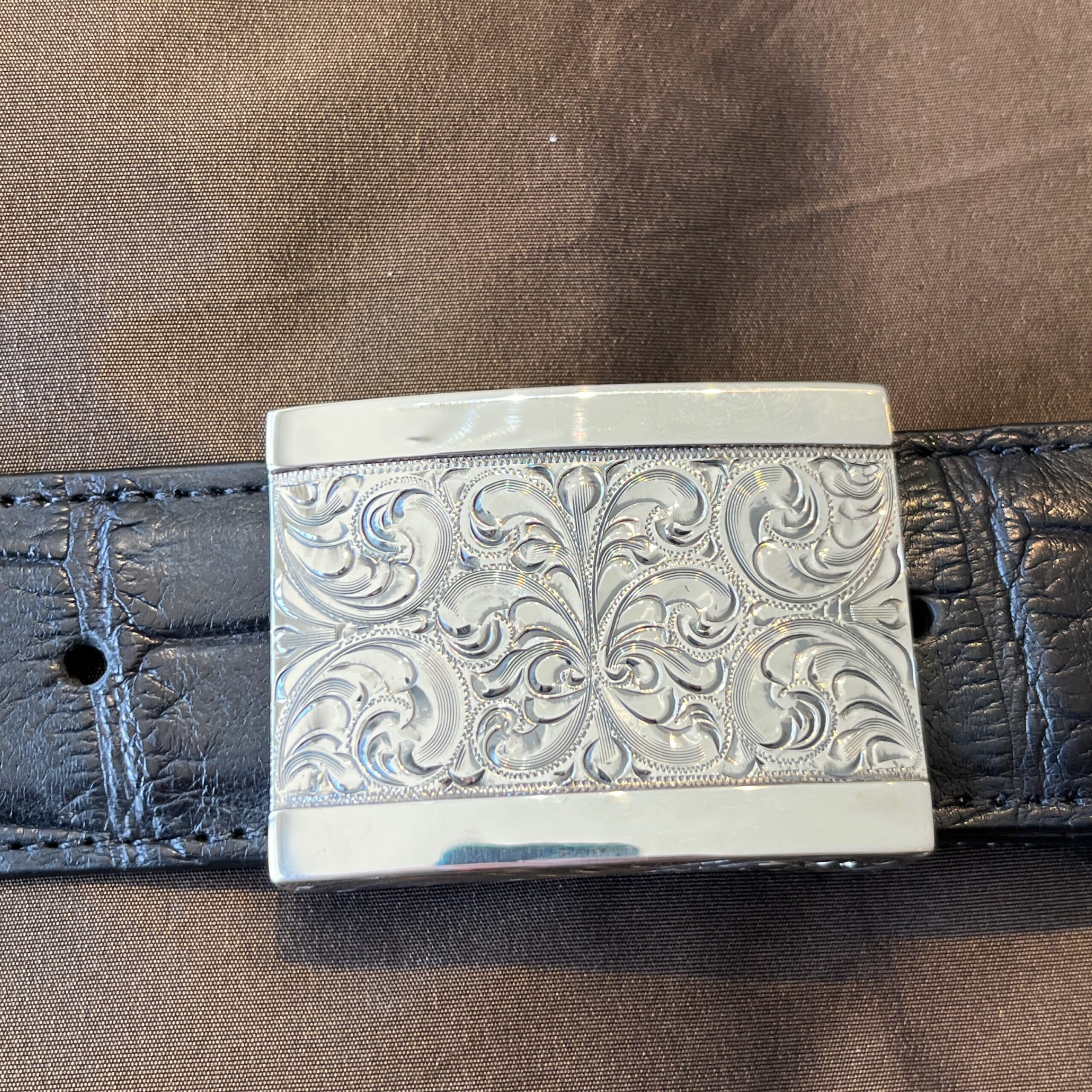 The Engraved Channel buckle is a one piece, rectangular buckle that can be used for dress as well as jeans. The is a Saddlebags exclusive. The artist makes it up just for our shop.